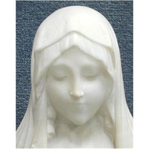 An art deco version of mary in a bust statue. Madonna wears 34c bra size and weights 127 pounds. Available in various materials from resin to bronze and various sizes and prices be sure to ask for help if you need it.